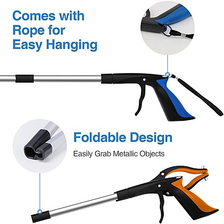 • Foldable & Magnetic Tip: The trash grabber can be folded for easy carrying outdoor and to storage indoor. For tiny metal things such as coins, keys, nails, pins, the magnetic tip helps a lot.
