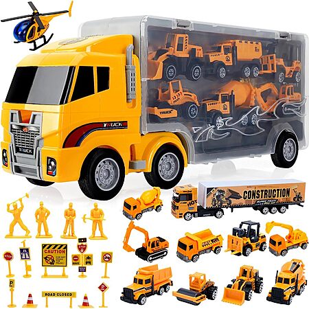 Alotjoy 13-in-1 Construction Truck Vehicle Set on sale for $28.99 -