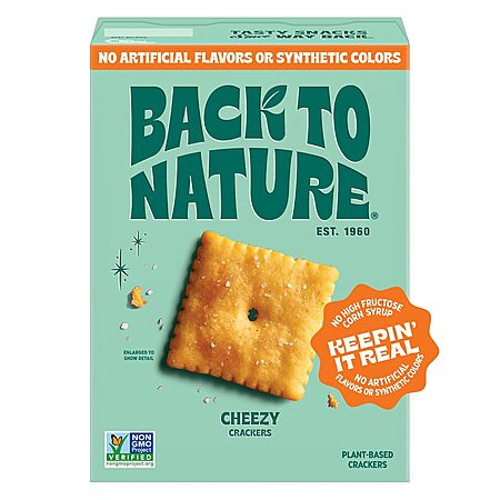Model: Back to Nature Cheezy Square Crackers, Non-GMO, Plant-Based Cheese Flavored Snack Cracker, Made with Wheat Flour, 5 oz Box