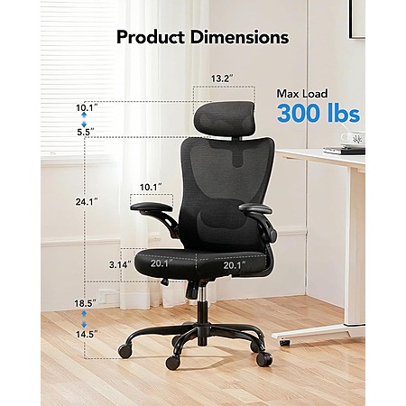 Model: HUANUO Ergonomic Office Chair, High Back Computer Desk Chair with Adjustable Lumbar Support and Headrest, Comfy Work Chair with 3D Armrests, Home Office Rolling Chair, Max Load 300 lbs