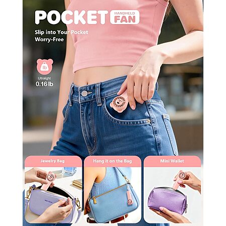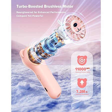 Funaudio Rechargeable Handheld Fan (Pink) $6.99 + Free Shipping w/ Prime or on $35+