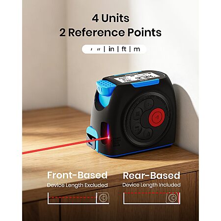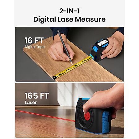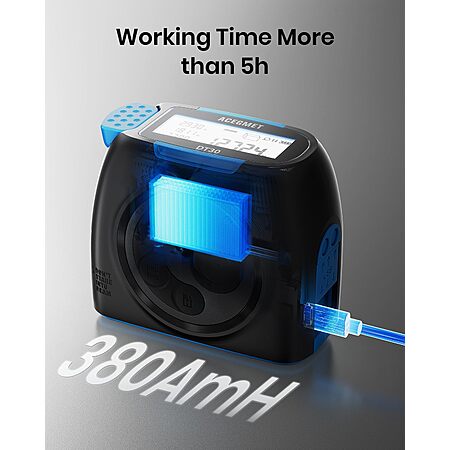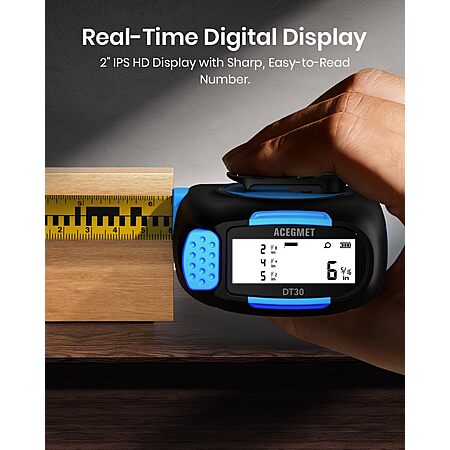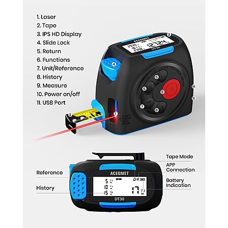 ACEGMET DT30 131ft Rechargeable Digital Laser Tape Measure with APP Sync, 16ft Measuring Tape, 2" Backlit LCD Screen $34.99