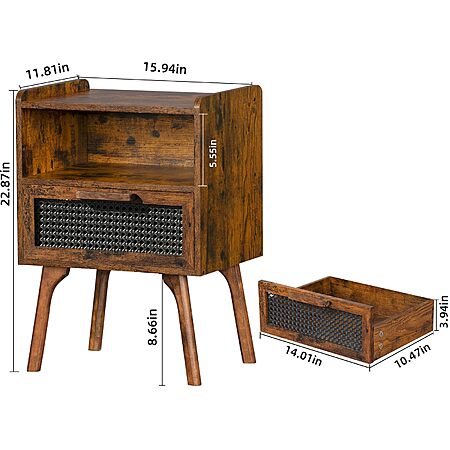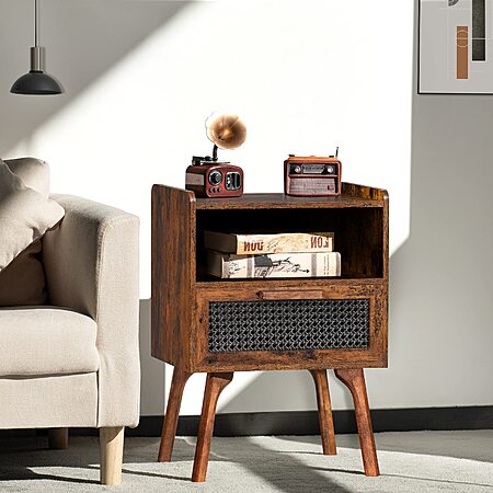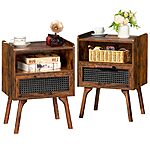 2-Pack 22.87" Lerliuo Boho Rattan Wooden Legs Nightstands w/ Drawer & Open Shelf $29.99 + Free Shipping w/ Prime or on $35+
