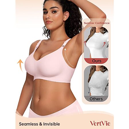 Vertvie Womens Wireless Jelly Bras No Underwire Push Up Seamless Bra Supportive Full Coverage Bralette Regular and Plus Size(Pink,Large) $9.27