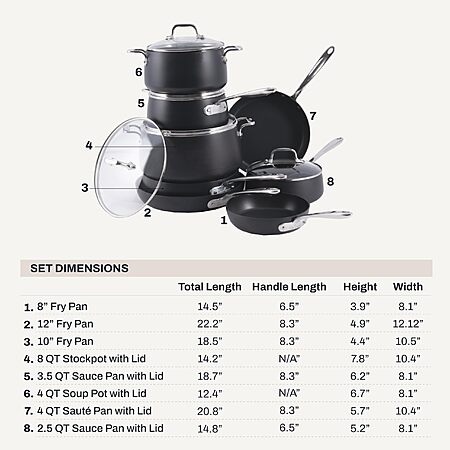 All-Clad HA1 Hard Anodized Nonstick Cookware Set 13 Piece Induction Oven Broiler Safe 500F, Lid Safe 350F Pots and Pans Black $594.99