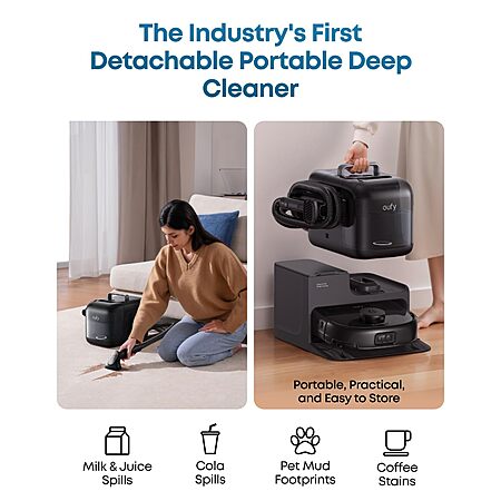 Model: eufy Robot Vacuum E28, Portable Deep Cleaner for Carpet, HydroJet System with Roller Mop, All-in-One Robot Vacuum and Mop Combo, 20,000 Pa Suction, Zero-Tangling, Corner-to-Edge Cleaning (Upgraded)