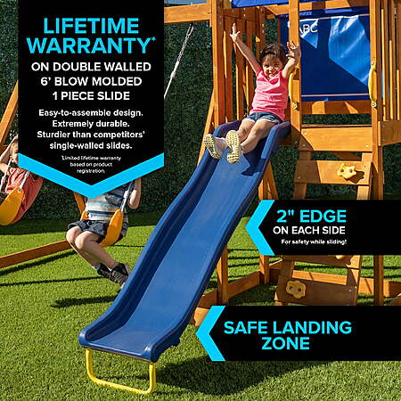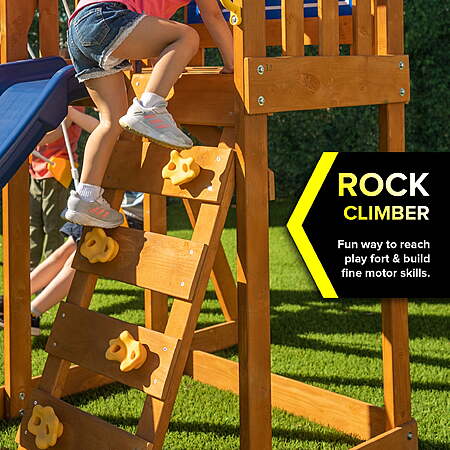 Sportspower North Peak Wooden Swing with Swing Swings, 6' Slide, Play Fort, Rock Climber & Sandbox, for Kids 3-8 $368