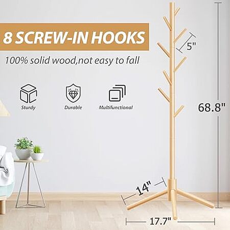 yujin-official via Amazon [amazon.com] has Unisakey Wooden Coat Rack w/ 8 Hooks & Adjustable Heights for $17.98.