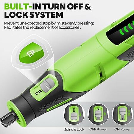 - Powerful motor reaching up to 25000 RPM for versatile tasks