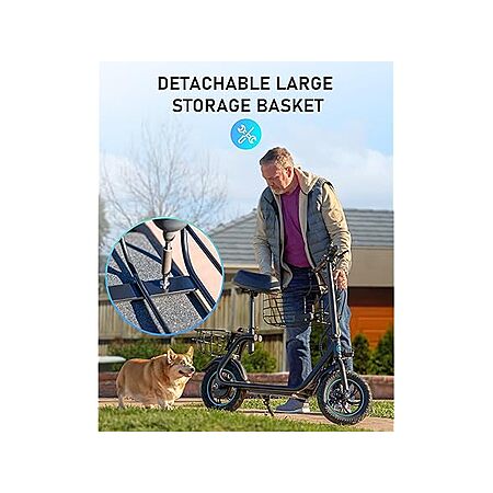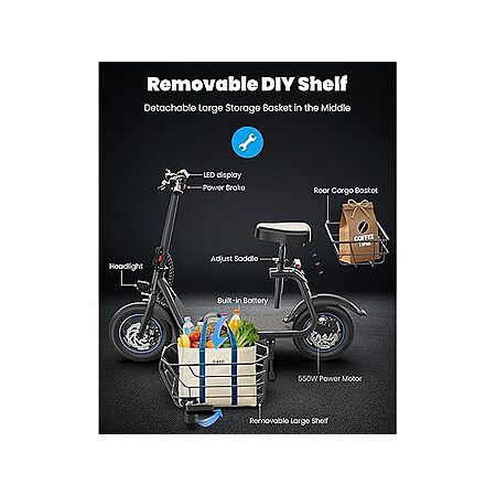 About this item- Experience unmatched convenience with our unique large middle basket and comfort seat. The spacious basket securely carries your groceries, packages, or even your beloved pet (up to 100 lbs total). The plush, breathable, and height-adjustable seat allows you to ride cargo scooter in ultimate comfort, transforming your commute or errand into a delightful journey.