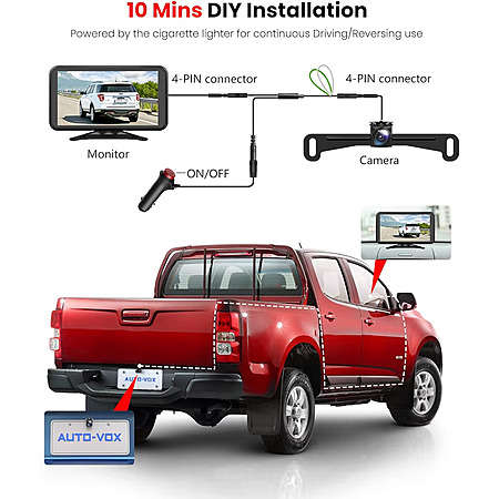 AUTO-VOX Backup Camera for Car Easy Setup Plug-Play: 4.8" 1080P No-Delay Clear Night Vision Rear View Camera $39.99