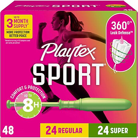 Amazon [amazon.com] has 48-Pack Playtex Sport Fragrance-Free Tampons (Various - see below) on sale for $9.97 - 25% off when you 'clip' the coupon on product page [amazon.com] - 5% off when you checkout via Subscribe & Save = $6.98. Shipping is free w/ Prime or on orders $35+.