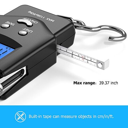 - Bonus Built-in Tape: Maybe you also want to know the length of your catch besides weight. We've got it covered! The included measuring tape is ideal for measuring items in either cm or ft. (up to 3 ft.)