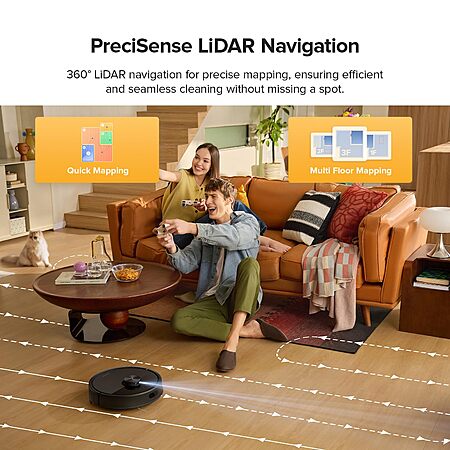PreciSense LiDAR navigation — precise room mapping, no-go zones, multi-level mapping