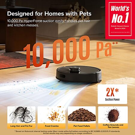 10,000Pa HyperForce suction — handles carpet and pet hair effectively