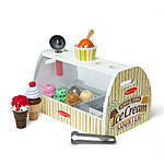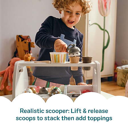 | Product Description: | Bring home the magic of a real ice cream shop with the Melissa & Doug Wooden Scoop & Serve Ice Cream Counter. This 28-piece set offers everything young chefs need to scoop, stack, and serve delicious treats. An amazing addition to any toddler kitchen playset, this Melissa and Doug ice cream set includes eight colorful scoops, six tasty toppings, cones, a cup, utensils, a menu card, and play money — inspiring hours of creative, screen-free fun. Kids love the vibrant colors & details, while parents appreciate its quality and educational value, making it a standout among toddler learning toys for boys and girls alike. For more thrilling role play, combine this with Melissa & Doug toys like a toy vending machine, an Ice Cream toy playset & other play kitchen accessories, to build a pretend play world! For 35+ years, Melissa and Doug has crafted imaginative preschool toys and durable wooden toys built to nurture childhood wonder, with everything from a life-sized grocery store playset to a play kitchen playset and play food to serve plush toys & puppets, to costumes, arts & crafts, and road trip activities for kids. It’s the kind of kid-powered play that builds independence and confidence! Complete Ice Cream Shop: Kids love scooping & stacking bright wooden scoops & toppings, with a kid friendly ice cream toy scooper, & serving on a countertop with special ports to hold all their treats Skill-Building Pretend Play Toys: Kids will boost their memory, hand-eye coordination & counting skills by remembering orders, customizing meals & handling play money, just like a real ice cream shop Open-Ended, Screen-Free Play: This premium set of wooden toys features smooth finishes, vibrant toy kitchen accessories, & a sturdy countertop—which also doubles as a toy storage box, for easy cleanup Educational Toys for Any Occasion: When buying a birthday gift & holiday gifts for kids, or rewarding little milestones, celebrate the moments that matter with Melissa and Doug toys for boys & girls Wholesome Play for 35+ Years: Melissa & Doug inspires kid-powered play with its learning toys for kids, baby & toddler toys, puzzles, games, building toys & stuffed animals, dolls, & even a doll house |
