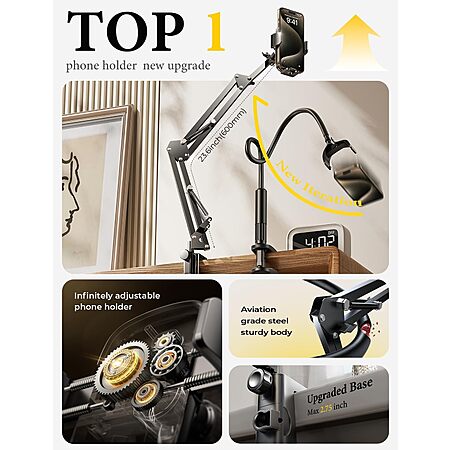 Lisen Carbon Steel Adjustable Phone Holder Desk Mount $14.81 + Free Shipping w/ Prime or on $35+