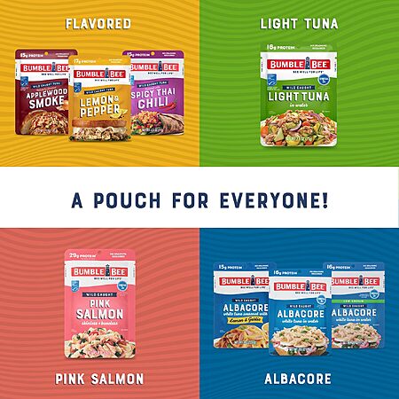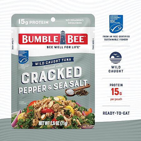 12-Pack 2.5-Oz Bumble Bee Cracked Pepper & Sea Salt Seasoned Tuna Pouches on sale for $12.00 -