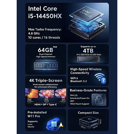 Prime: KAMRUI Hyper H2 Mini PC: i5-14450HX, 32GB DDR4, 1TB, Win 11 Pro $512.99