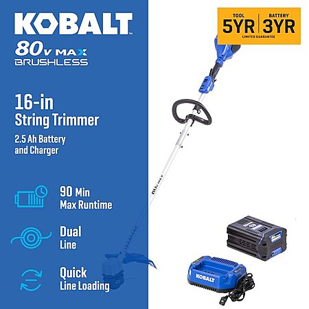 Kobalt 80-volt 16-in Straight Shaft Battery String Trimmer 2.5 Ah (Battery Included) (Charger Included) $149