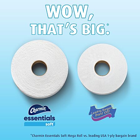 - Charmin Essentials Soft is thicker vs.the leading USA 1-ply bargain brand