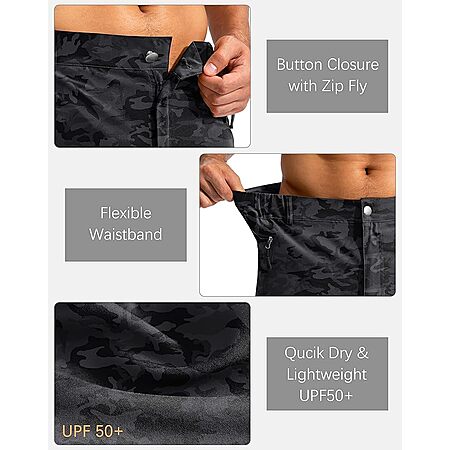 About this item- 5 Zipper Pockets Hiking Shorts: Including 2 slash pockets, 2 flat pockets, and a back pocket. All the deep zipper pockets allows for secure storage of valuables like wallets cell phone and keys.
