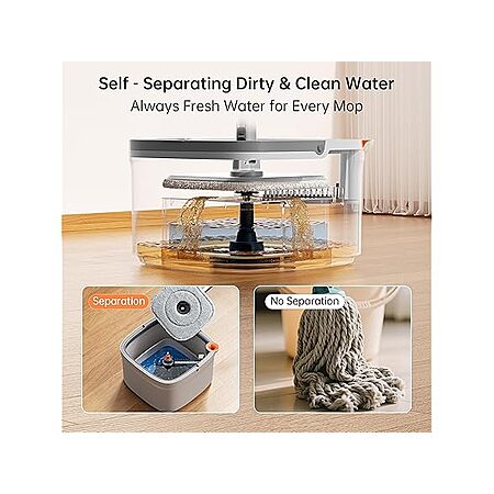 - MOP BUCKET SEPARATES CLEAN AND DIRTY WATER SEPARATION SYSTEM:The mop and bucket with clean water spinner not only removes hair and dirt, but also separates clean water from dirty water, ensuring only pure water touches your floors