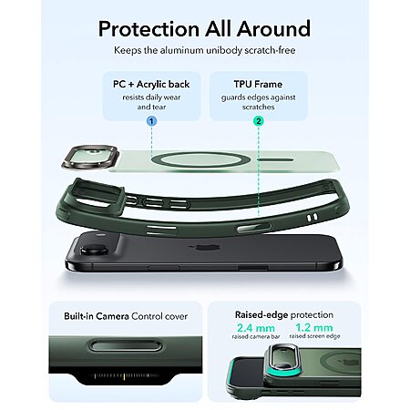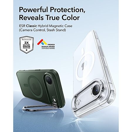 ESR for iPhone Air Case with Stash Stand, Camera Control Cover Compatible with MagSafe, Military-Grade Drop Protection Magnetic Phone Case for iPhone 17 Air, Frosted Green $8.99