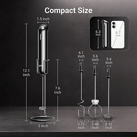 Model: InstaWhisk Milk Frother with Variable Speed, Rechargeable Coffee Frother Wand with Detachable Double Whisk, Drink Mixer Handheld Electric Stirrer for Latte, Cappuccino, Matcha, Almond Milk, Protein