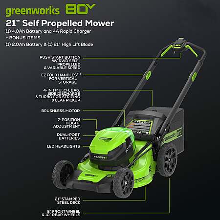 - Greenworks 80V 21" Self-Propelled Lawn Mower (Renewed)