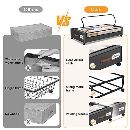 - High-Quality&Large Capacity: our under bed drawers is made of 600D Oxford cloth and strong metal frame, which can hold up to 66lbs; the wheeled bed storage box can accommodate many daily necessities, such as clothes, toys, books, shoes and so on