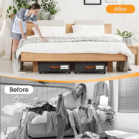 - Leather Handles&Rotating wheels: our underbed storage is equipped with leather handles, which are comfortable to hold; it comes with 4 x 360°rotating wheels, two of which have locking function; when placed under the bed, the wheels make it very convenient to push and pull