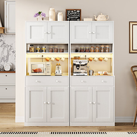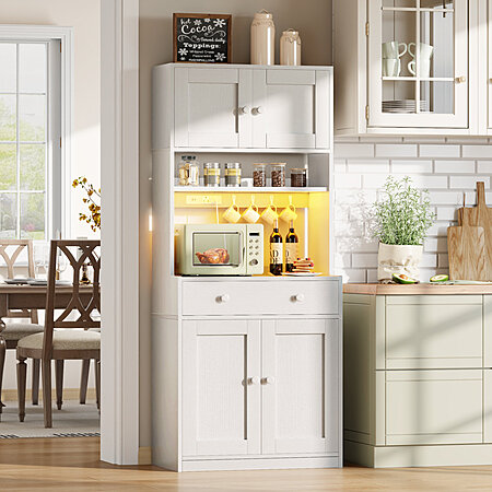 71" Wrought Studio Kitchen Farmhouse Pantry Cabinet w/ Power Outlet & LED Light (White) $159.99 + Free Shipping