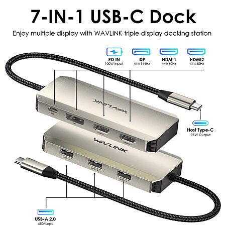 Wirelessforce via Amazon[amazon.com] has WAVLINK Triple 4K Laptop Docking Station w/ Dual HDMI, DP, 100W PD for $24.99. Shipping is free w/ Prime or on $35+.