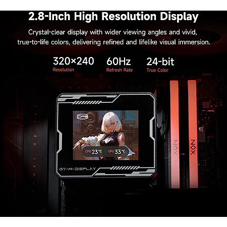 2.8" High-Resolution LCD Display 320×240 IPS screen with 60Hz refresh rate and 24-bit true color delivers vivid visuals and wide viewing angles for real-time stats or custom graphics.