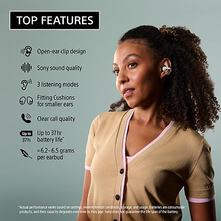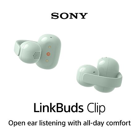 Model: Sony LinkBuds Clip Open-Ear Truly Wireless Earbuds, Comfortable & Secure Fit, Lightweight Clip-On Design, Touch Controls, Ambient Sound Awareness, Water Resistant, Up to 37 Hrs of Playback, Green