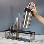 Elevate your cocktail-making experience with this elegant 6-piece Bar Tool Set from Rabbit, which includes all the tools you need to become a master mixologist, including: double-walled cocktail shaker with integrated strainer, muddler, stir spoon, double-sided jigger, Hawthorne strainer, and stand. The double-walled shaker ensures insulation and prevents condensation with a soft grip for comfortable handling. Made from durable, rust-resistant, high-quality stainless steel.