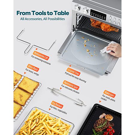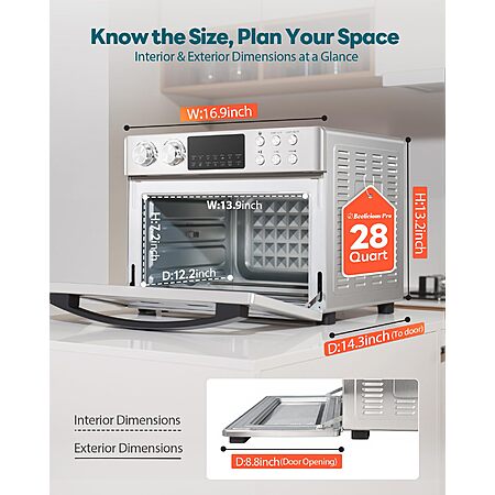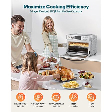 28QT Air Fryer Toaster Oven Combo, Large 12-in-1 Convection Countertop Oven with 3-Layer Cooking Stainless Steel $169.99