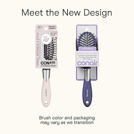 [AC] $1.34* | 2 × Conair Velvet Touch Travel Hair Brush (Assorted Colors) (67¢ each) at Amazon