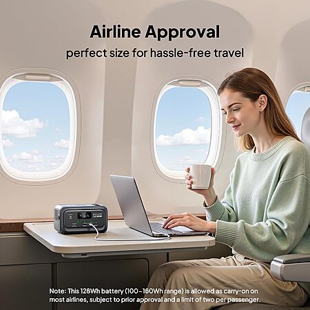 • [Lightweight & Airline-Friendly] - Just 4.0 lbs with an ergonomic handle, this palm-sized portable power station slips easily into your backpack. With a 128Wh capacity, it falls within the 100–160Wh range and can be carried on most major airlines with prior approval (limit 2 per passenger). Perfect for travel, flights, and everyday portable power needs.