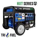 They DuroMax's XP15000HXT is the LARGEST single-cylinder, tri fuel generator, on the market and utilizing the world's only 670cc single-cylinder oil cooled engine! Power your entire home and essentials during outages. This is the HXT Series flagship model and features a 50-amp plug, one 120V 30-amp plug, one 120/240V 30-amp plug, and TEN standard household outlets, offering immense versatility. Operate on gasoline, propane, or natural gas. DuroMax offers the most power in the industry while running on natural gas, as we are the only company to include a 3/4' inch NG hose. Don't be fooled by inferior units that only offer 1/2' inch lines. Enjoy convenient remote and push-button starts, alongside a state-of-the-art Digital Control Center for easy monitoring of power output, load, and running hours. A robust, flexible solution for uninterrupted power supply.