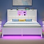 Amazon.com has Rolanstar Bed Frame Full Size with Charging Station, Bookcase Headboard Bed with LED Light and Sliding Doors, Platform Bed with Wooden Slats, No Box Spring Needed, Noise Free, White on sale for $172.99.