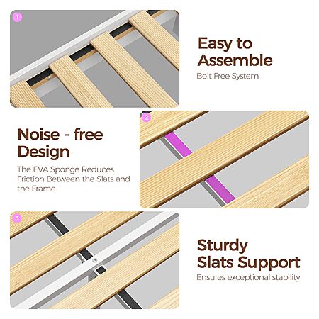 - Sturdy & Durable Structure: Made with 12 wooden slats, 2 metal brackets, and 9 legs for a squeak-free, stable, and comfortable sleep.