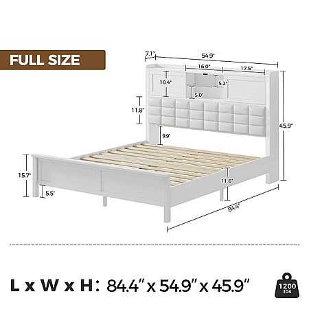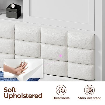 - Bed with Charging Station: Built-in charging station with two USB ports and one type-C port in the headboard, providing convenient access for charging devices and a spot for a reading lamp.