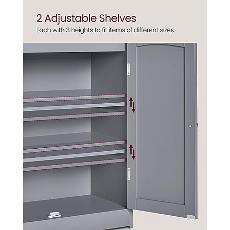 • Adaptable Storage: Behind the doors, you'll find 2 adjustable shelves, each featuring 3 height options. They are perfect for storing items of various sizes