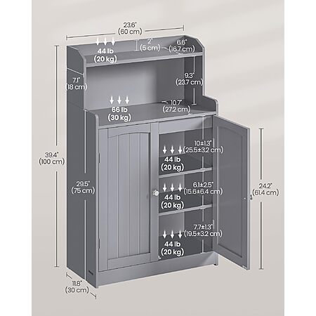 Model: VASAGLE Bathroom Storage Cabinet, Bathroom Floor Cabinet with 2 Doors, 2 Adjustable Shelves, 11.8 x 23.6 x 39.4 Inches, Freestanding, for Dining Room, Kitchen, Living Room, Dove Gray UBBC770G02