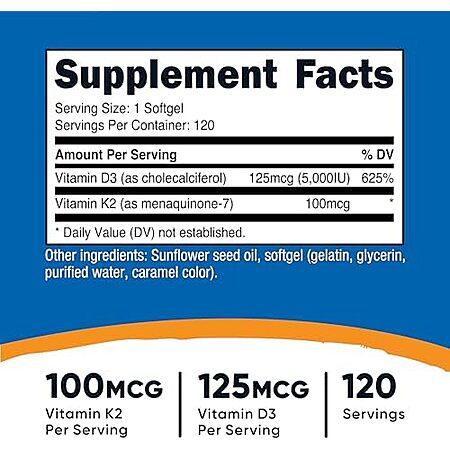 [SnS] $9* | 120-Ct Nutricost Vitamin 5000 IU D3 + 100mcg K2 Softgels at Amazon