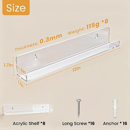 Laurensory 8-Pack or 12" Vinyl Record Wall Mounted Shelves $10 @ Amazon