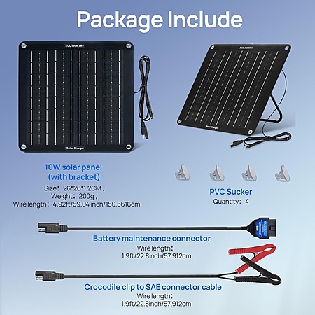 ECO-WORTHY 10W Solar Car Battery Charger Maintainer w/ OBD-II Cable on sale for $29.99 - additional $6 when you apply promo code