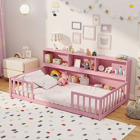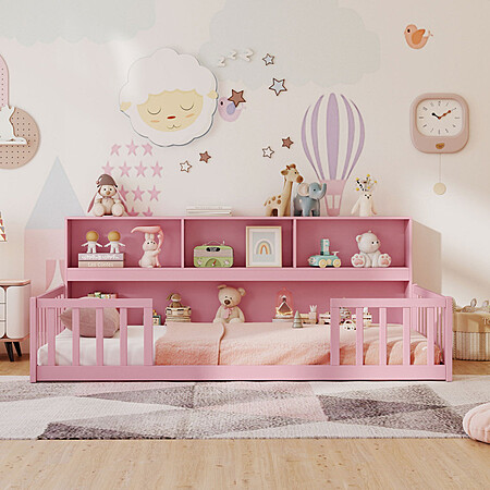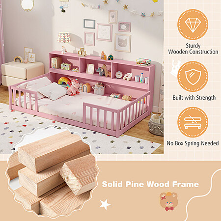 Costway Twin Size Montessori Floor Bed with Bookcase $144 + Free Shipping